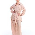 A camisa oversized feminina linho fake bege manga longa possui comprimento acima do joelho, mangas longas, fechamento de botões na frente e nos punhos, pregas nas costas, acompanha faixa de amarração para a cintura e é feita em tecido 100% poliéster.