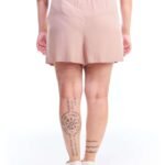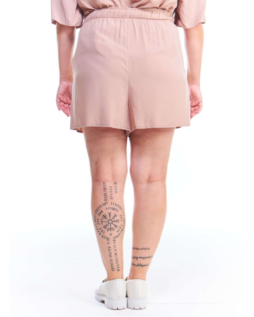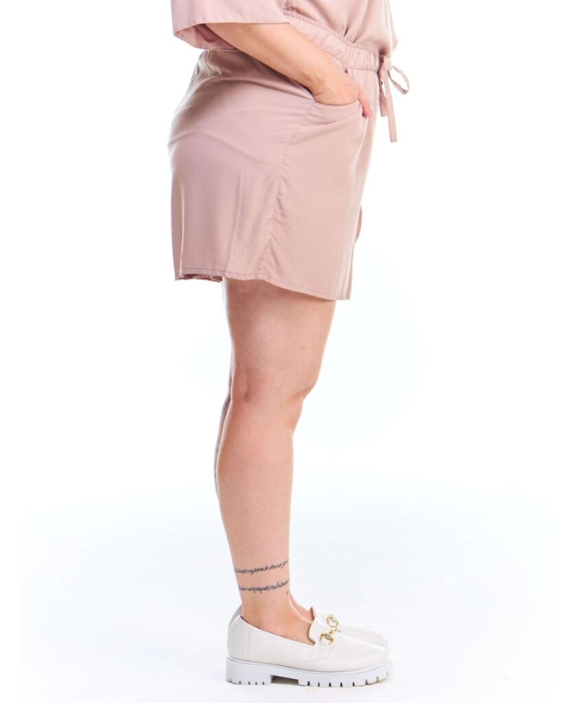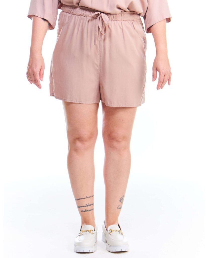 A bermuda viscose feminina off white possui pernas amplas, cintura alta, cós de elástico com cordão de ajuste e bolsos embutidos nas laterais da frente; unindo perfeitamente fluidez, estilo e conforto.