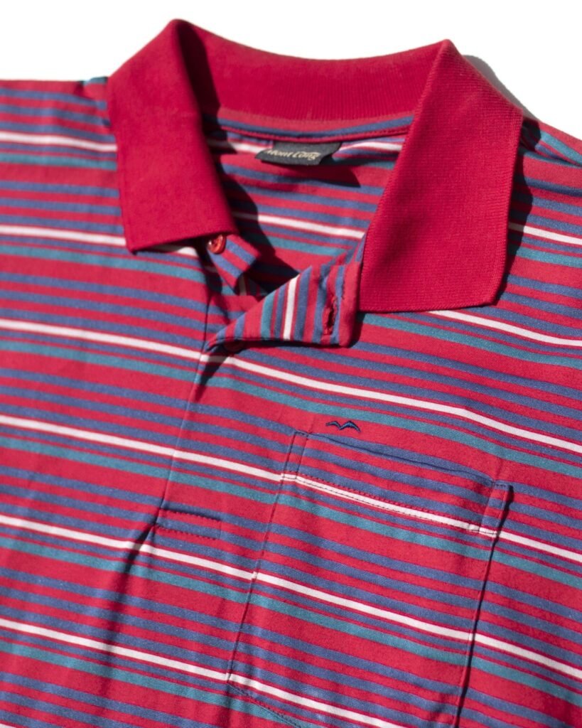 Camiseta polo desenvolvida para o público adulto masculino, feito com malha de algodão misto, na cor vermelho, com estampa listrada.