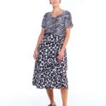 A blusa feminina estampada preta de viscose manga curta possui comprimento até o quadril, gola v, mangas curtas, pences de busto na frente e é feita em tecido 100% viscose.