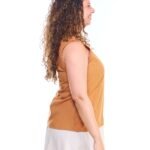 A regata feminina bege de viscose é uma peça curinga que transita com facilidade entre diferentes estilos e ocasiões. Para um look sofisticado, combine com calça de alfaiataria em tons escuros, como marinho ou preto, e adicione acessórios dourados para um toque refinado. Em propostas mais casuais, ela vai muito bem com jeans claros, shorts de linho ou saias estampadas, criando um visual leve e elegante. Sandálias de tiras, rasteiras ou um tênis branco completam o look com charme e conforto.