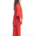 Os bolsos embutidos nas laterais da frente da calça pantalona terracota viscose são outro detalhe que tornam a peça não apenas estilosa, mas também prática. Esses bolsos, que são discretos e elegantes, adicionam funcionalidade ao modelo, permitindo carregar itens essenciais como chaves ou celular, sem comprometer o visual clean e sofisticado. É uma pantalona que une o útil ao agradável, oferecendo um design moderno e útil ao mesmo tempo.