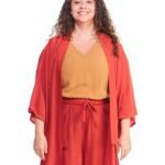 O kimono feminino viscose terracota com modelagem tradicional japonesa se destaca pelo seu design autêntico e cheio de personalidade. Com silhueta reta e oversized, ele proporciona um visual moderno e descomplicado, perfeito para composições estilosas e confortáveis. As aberturas abaixo das mangas trazem leveza e um toque de movimento, enquanto o comprimento acima do joelho garante versatilidade, permitindo o uso tanto em produções casuais quanto em looks mais elaborados.